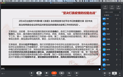 此外,会议还针对加强网课学风建设,“战疫有我”作品征集以及良好居家作息等主题展开讨论。