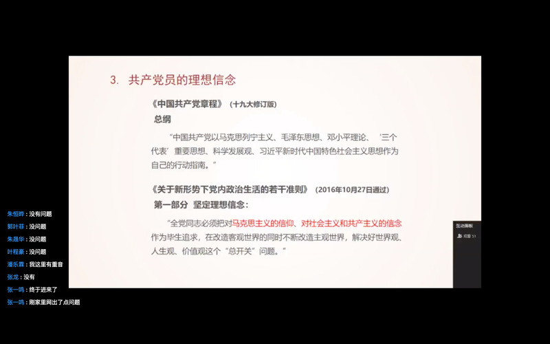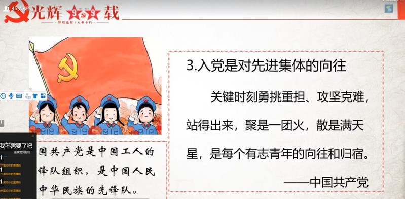 为了使入党积极分子理解和掌握党的基本理论、基本路线、基本纲领,进一步端正入党动机,自觉加强思想理论修养,增强政治意识和责任意识,增强辨别是非的能力,坚定理想信念,从而在各个方面积极努力创造条件,争取早日加入党组织。2020年4月24日光电学院、生仪学院和控制学院在线上举办了入党积极分子培训班。本次培训班理论部分主要分为四个环节。
