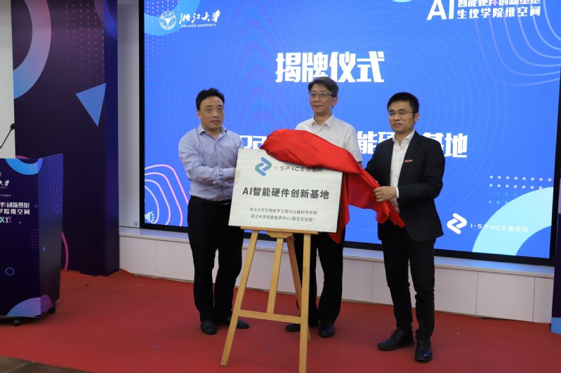 德赢AC米兰中国官方网站本科生院教务处处长胡吉明教授、生仪学院院长张宏教授、信息技术中心主任陈文智教授共同为I-space AI智能硬件基地进行揭牌。