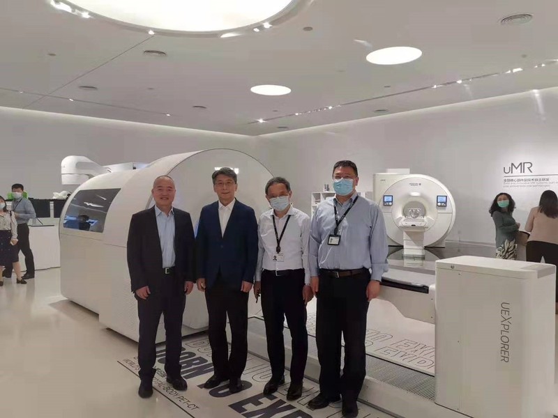 在上海联影医疗科技有限公司(联影医疗),张宏院长一行受到联影医疗联席总裁张强等高层热情欢迎,并参观了联影医疗的高科技展厅,近距离感受到了联影近年来作为改变者、创造者和跨界弄潮儿,在高端医疗设备方面所取得的巨大进步。张宏院长一行与联影医疗联席总裁张强、联影医疗中央研究院院长陈群、联影医疗磁共振事业部研发副总裁贺强等进行了座谈交流。联影联席总裁张强和张宏院长首先对双方的发展概况做了简要介绍,生仪学院夏灵教授、吴丹研究员、张祎研究员、王旻研究员、何宏建副教授、郑音飞副教授、谢立副教授和王鹏博士分别就各自在医学影像领域的研究基础和进展进行了介绍和互动交流,交流研讨气氛热烈,联影医疗对某些领域研究表现出了浓厚兴趣,提出了较好的合作意见和建议。