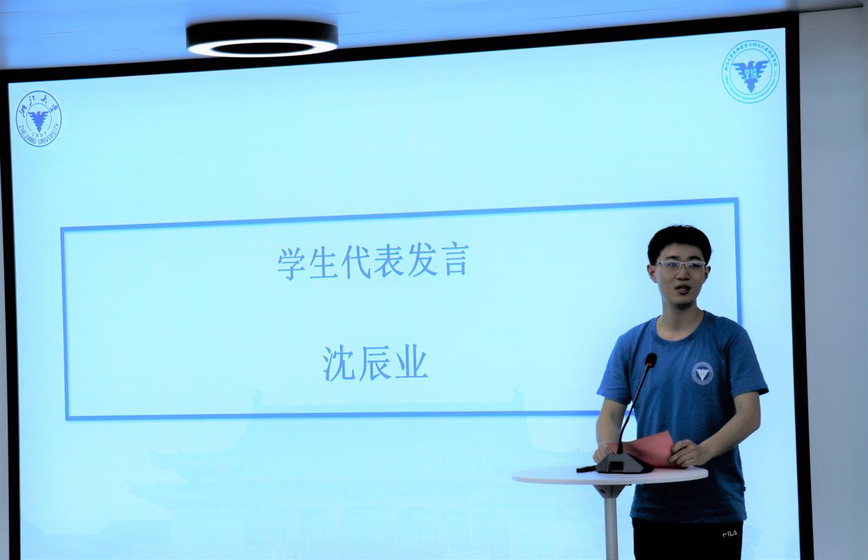 接着,沈辰业同学作为学员代表在发言中分享了成为实验班一员后自己的三维目标。第一维是潜心研究,拓展专业前沿知识。第二维是实践动手,增强科研实践能力。第三维是创新创造,激发自主创新能力。在吕维雪实验班,学员们能够站在巨人的肩膀上眺望远方。在各位导师、校友的指导下,通过实验室内科研项目实训以及学员之间集思广益,学员们定能达到聚沙成塔的效果,有广阔的创新创造空间,大有可为。