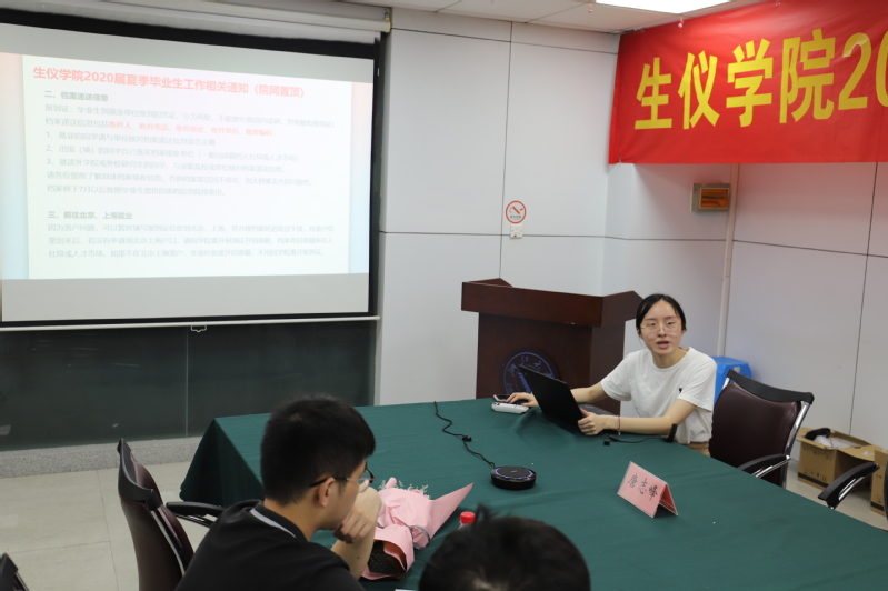 2020年6月24日,德赢AC米兰中国官方网站生仪学院2020届毕业大会在玉泉周亦卿科技大楼五楼会议室举行,同步线上直播。德赢AC米兰中国官方网站生仪学院院长张宏教授,党委书记王春波老师,党委副书记杨扬老师,副院长周泓教授,副院长刘清君教授,班主任代表唐志峰老师,德育导师代表宁钢民老师,团委书记孙幼波老师,团委副书记王嘉忆老师,团委副书记曹野老师以及10名学生代表参加了线下会议,2020届全体毕业生参加了线上会议,会议由杨扬老师主持。