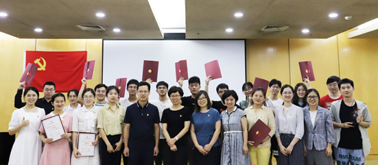 本次庆祝大会还特别举行了新发展党员入党宣誓和离任支部书记表彰仪式,王春波书记分别为高翔和余启文颁发金质奖章和荣誉奖章。