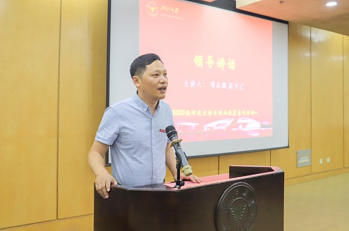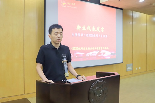 最后,生仪学院2020级生物医学工程硕士生祖涛代表新生发言,祖涛同学带大家走进竺老两问,指出医疗产品依赖进口的现状,提到研究生应当根系浙大,胸系祖国,放眼世界,以积极的态度迎接挑战,创造属于我们的未来。