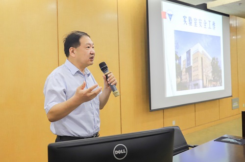 生仪学院实验室主任沈义民老师进行了实验室安全教育,首先介绍各类实验室的大致分布,再通过对高校安全生产的概念、学校常规的安全教育、学院常规的安全提示等进行展开说明,结合实验室安全手册,提醒同学们重视实验室安全,为安全顺利的科研生活打下基础。