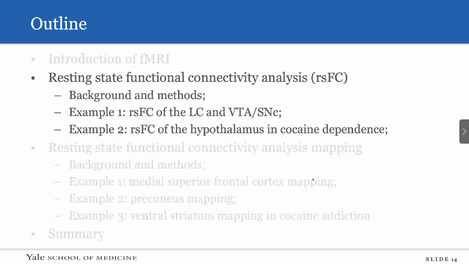 在本次报告中,张盛博士首先对fMRI进行了介绍,接着介绍了静息状态功能连接分析与制图,从基本的方法开始介绍,重点介绍了他们团队基于静息状态功能连接分析在认知和成瘾神经科学中的应用方面的研究。