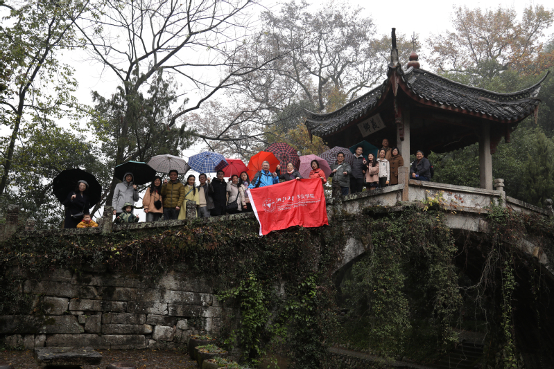 第二天,教职工们饶有兴趣地参观了古生态村郭洞景区。郭村按照人体的经络图来构造,融山水、树林、古桥、古寺和古墙各种景观于一体,彰显古人天人合一的哲学理念。村民身健寿高,平均寿命85以上,是著名长寿村,素有江南第一风水村的美誉。