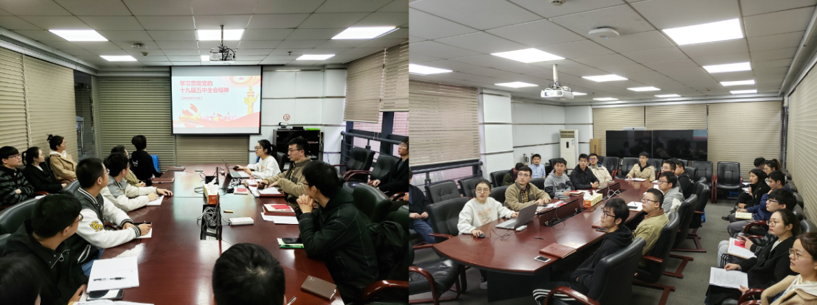 会议伊始,首先由支部宣传委员刘梦雪同志向支部党员传达党的十九届五中全会精神,介绍了于2020年10月26日至29日在北京举行的中国共产党第十九届中央委员会第五次全体会议的主要内容,并向大家解读了会议的核心关键词。一是我国发展仍处于重要战略机遇期这一重大判断;二是强调了坚持创新在现代化建设全局中的核心地位,这是我们党编制五年规划建议历史上的第一次;三是强调了会议中提出的国内国际经济双循环的新发展格局。接着,刘梦雪同志向大家详细传达了会议审议通过的《中共中央关于制定国民经济和社会发展第十四个五年规划和二〇三五年远景目标的建议》中的2035年远景目标,即到2035年基本实现社会主义现代化的九个详细目标,并讲解了“十四五”时期经济社会发展指导思想和必须遵循的原则中的九个“坚持”和为实现2035年远景目标所提出的12项工作要求和重要举措。