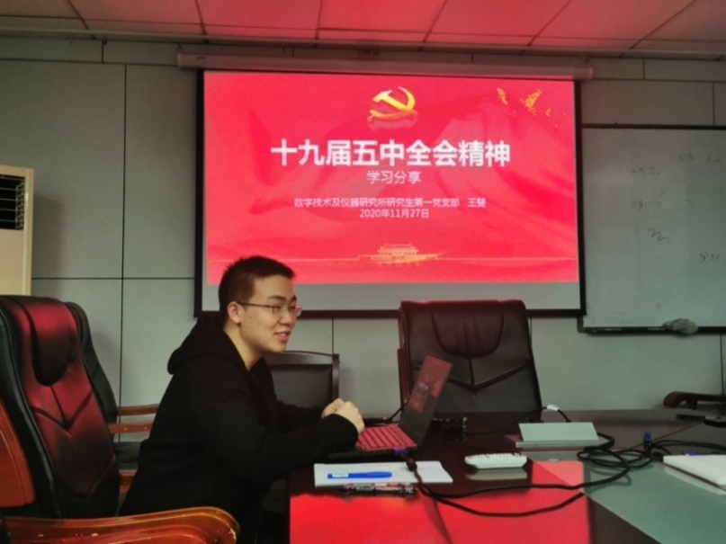 会议开始,首先由党支书王斐做党课学习与分享。王斐就十九五全会公报内容、十四个关键词进行一一解读。科技是第一生产力,是我们实现二〇三五远景目标的强有力抓手,作为工科研究生,专业素养与技能储备一定要够硬够专,积极响应科教兴国战略、人才强国战略。针对国际与国内发展环境的复杂变化,当前正值百年未有之大变局,国际形势日趋复杂,不确定性不稳定性增加,党员同志应不断提升自身专业素养与技能,以果敢坚毅的态度迎难而上,在以习近平同志为核心的党中央领导下,以坚定而有力的步伐不断行进在社会主义的道路上。