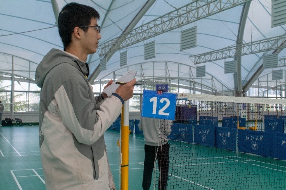 赛场上不只选手引人注目,还有许多组织人员也同样是一道风景线。他们是在赛场旁认真计分的裁判,亦或者是管理着赛程的组织者。有人给运动员送水,有人主动清扫场地上的落羽,给他人以方便。冬日的赛场上也有满满的温情呢。