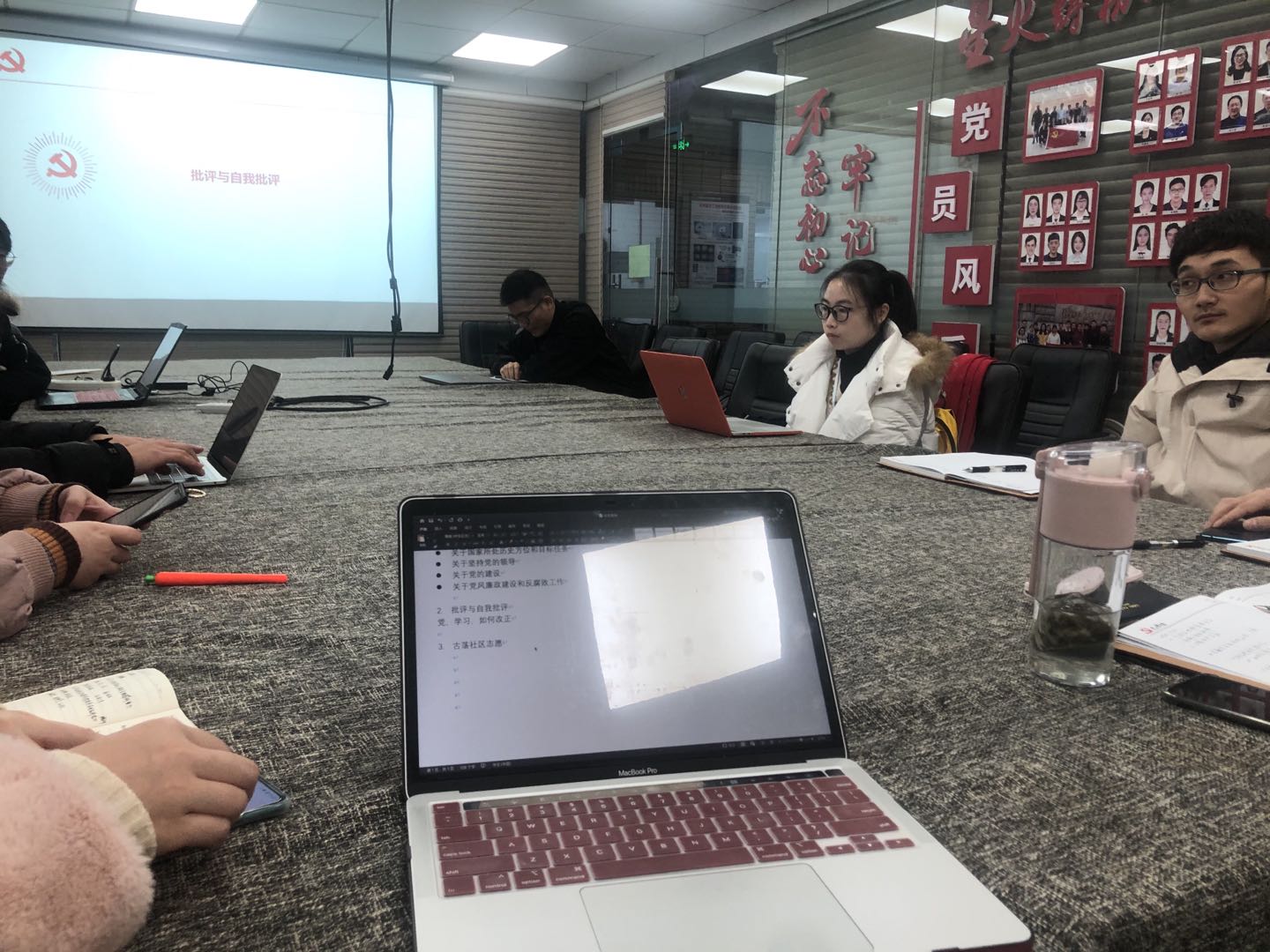 随后支部书记任相林带领大家进行批评与自我批评。支部各位党员总结过去一年的工作,对自身学习和未来发展做了深入分析,同时在学习党理论知识、科研以及服务群众等方面进行批评与自我批评,提出自身不足之处以及改正措施,互相指正,共同发展。