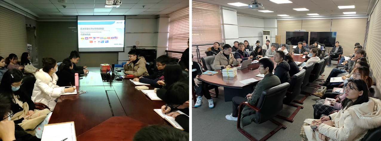 之后支部邀请王肃杰同志进行了“一党员一党课”分享活动。王肃杰同志就上个月正式签订的《区域全面经济伙伴关系协定(RCEP)》,分享了此协定所带来的机遇与挑战。王肃杰同志从亚洲经贸合作的历史发展、RCEP协议8年的谈判历程、并基于中国的基本国情分析和总结了中国在签署RCEP后的发展机遇和挑战,提出我们学生党员应该将个人发展与国家的时代使命相结合。