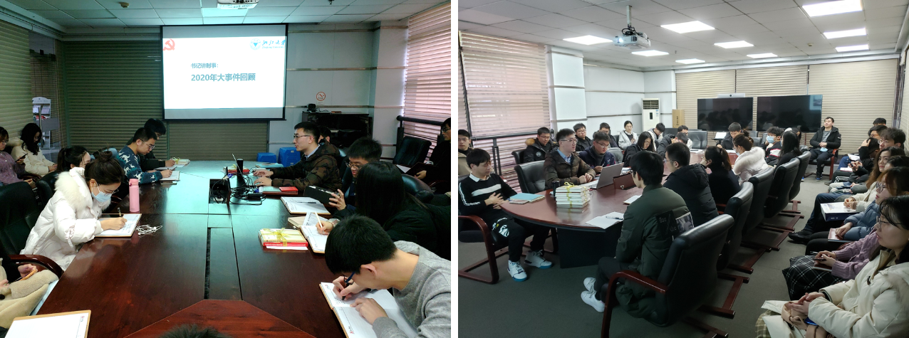 随后,在这个2020年即将结束的节点,魏鑫伟同志带领支部党员对2020年全球发生的热点大事件进行了回顾,从年初的美伊“苏莱曼尼”遇刺事件、中美达成第一阶段经贸协议、新冠病毒肆虐中国和全球、东非蝗灾和美股暴跌,到年中我国长征五号B火箭的首飞成功以及天问一号的成功发射、美非裔男子弗洛伊德死亡事件、中印边境冲突以及香港国安法出台,再到阿塞拜疆与亚美尼亚的“纳卡地区”军事冲突、党的十九届五中全会的顺利举行、嫦娥五号的成功发射和返回、RCEP协议正式签署及美国大选尘埃落定。在即将过去的2020年,发生了太多影响世界、改变世界的大事,尤其是新冠疫情的发生,将永久深刻地改变当下世界格局。魏鑫伟同志号召广大党员同志们要以史为鉴,善于总结,珍惜青春时光,在即将来临的2021年作出更好的成绩。