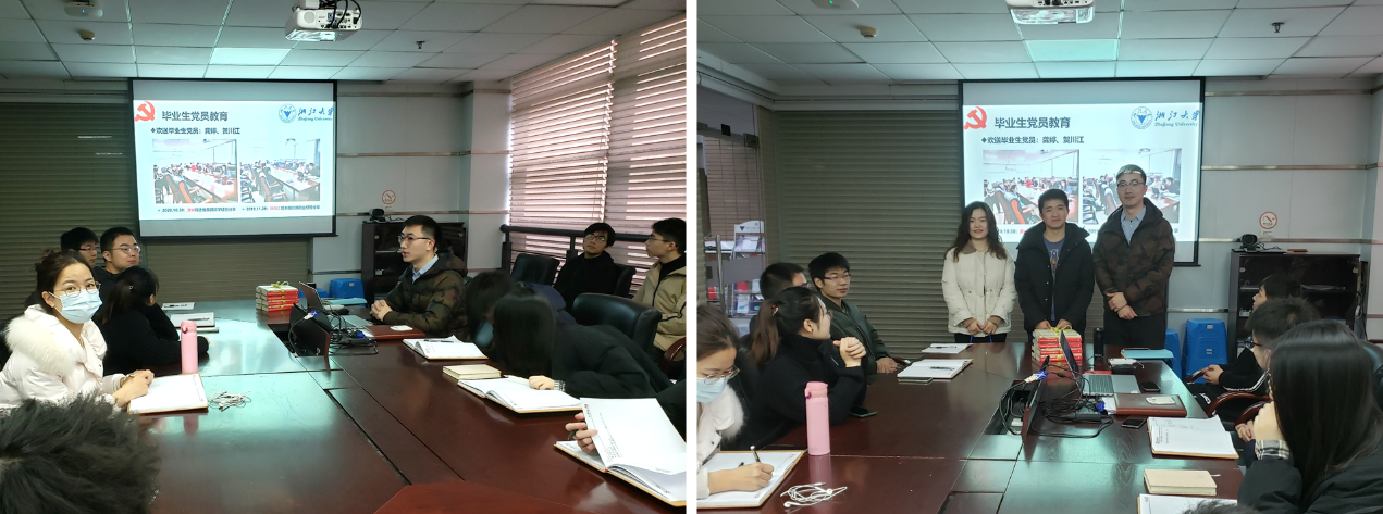首先,支部热烈欢送了今年12月份毕业的两位党员龚婷和贺川江同志,魏鑫伟同志代表支部对毕业的同志送上了祝福,并希望两位同志在今后的学习工作和生活中,时刻牢记浙大学子身份,发挥浙大学子求是作风,牢记自身党员身份,继续发挥党员的先锋模范带头作用。