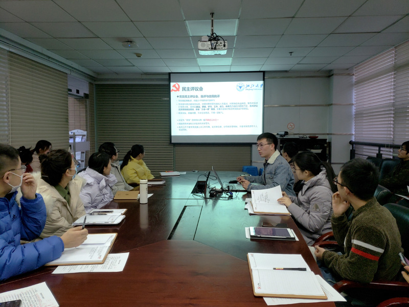 2021年1月12日下午,生仪学院生医所研究生第一党支部在周亦卿大楼二楼会议室举行了2020年度的民主生活会,与支部结对的党委委员、院长张宏教授出席了会议。会议由支部书记魏鑫伟同志主持,大会内容包括了支部2020年度工作总结、“一党员一党课”分享活动以及党员民主评议三项议程。