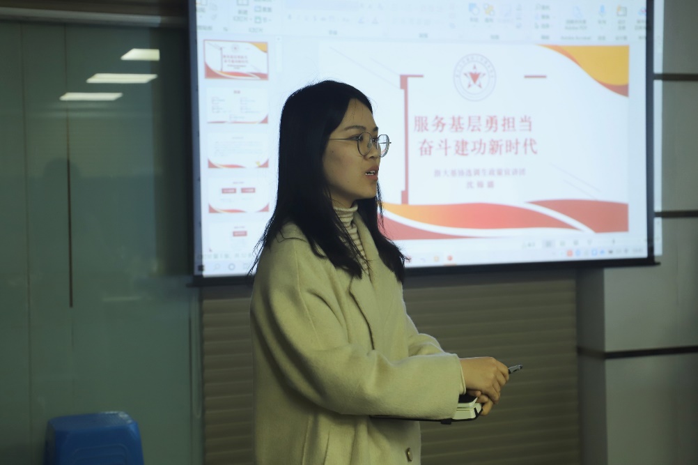 政策宣讲团讲师沈锦璐由浅入深,分别介绍了选调生内涵、考公渠道对比、典型省市政策分析(浙江、上海、广西)、全国宏观政策对比和选调准备五个方面,对选调生政策的横纵向发展作了详尽地分析和讲解,同时对同学们如何合理规划和准备选调给出了自己的建议。宣讲内容结束后,沈学姐耐心回答了同学们提出的问题,并分享了自己身边的一些选调故事,让同学们对于选调生有了更直观的了解,对投身基层建设有了新的感悟,同时也对自己的职业选择有了更多元地规划。
