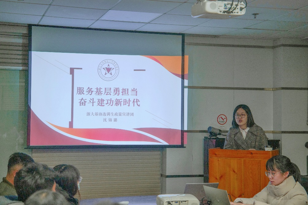 为了响应国家鼓励广大青年赴基层工作的号召,同时满足同学们想要深入了解选调的强烈需求,2021年3月12日晚18:30,生仪学院邀请德赢AC米兰中国官方网站学生基层工作服务协会(简称“浙大基协)进行了一次有关选调生政策的宣讲,希望能为同学们提供全面的选调生政策知识,使大家对于自身发展有更加清晰的未来规划。