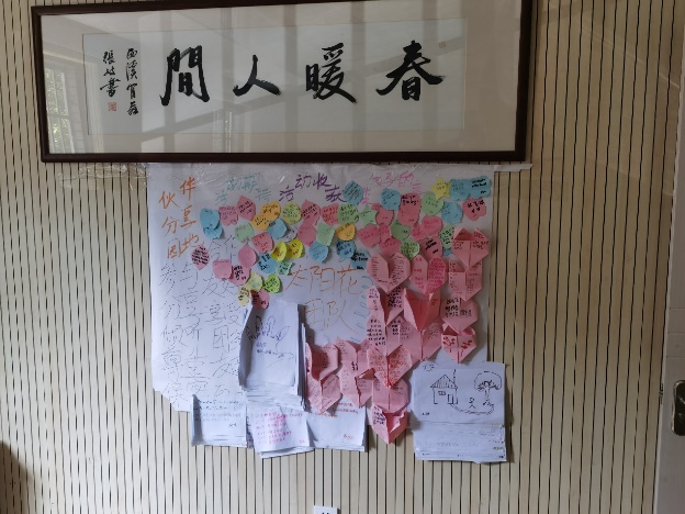 感悟志愿,倾听诉说。在活动开始前,基地负责人带领志愿者参观了实践基地,与在古荡工疗站服务的老人们进行了亲切的交流。志愿者们参观了往期志愿活动心得展示墙,深深感受到了古荡工疗站浓厚的服务奉献精神。之后,志愿者们前往老人们的工作区,与老人们唠家常,倾听他们当年的故事。