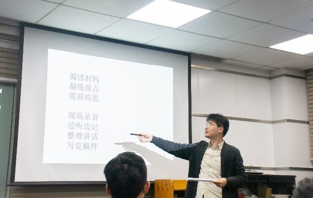 从骑行跨越中国的留学生到专精集体合照的“老金”,从坚持站立授课的蒋教授到自学两门外语的宿管阿姨,柯老师用同学们身边真实发生的生动案例,从“新闻在哪儿”、“新闻怎么找”、“新闻怎么写”三个维度,讲解了如何捕捉校园中的新闻,如何抓住亮点,如何写好文章。