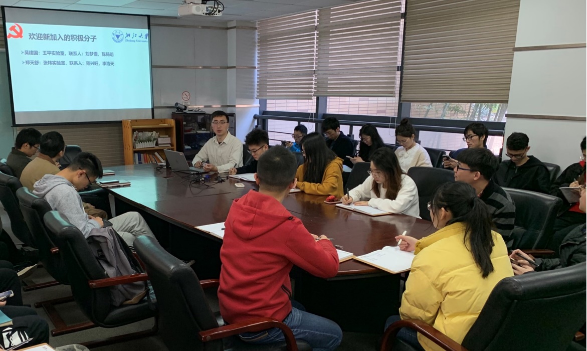 2021年3月25日上午,生仪学院生医所研究生第一党支部在周亦卿大楼二楼会议室举行了3月份支部党员大会,会议由支部书记魏鑫伟同志主持。首先,魏鑫伟同志介绍了新加入党支部的两位积极分子吴建国和郑天舒同学,两位同学分别进行了自我介绍,支部各位党员同志对新成员的加入致以热烈欢迎。