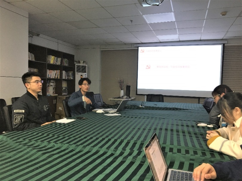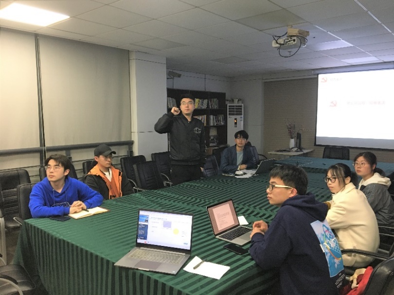 接下来,生医研四党支部和医工一班的团员共同聆听了支部书记任相林和纪律委员陈学钊的党课。任相林同志以“属于81192的忠爱”为题目,带大家回顾了2001年的4·1中美南海撞机事件,带大家认识了为国捐躯的革命英雄---王伟烈士,激发了大家的爱国情怀和科研报国的奋斗激情。