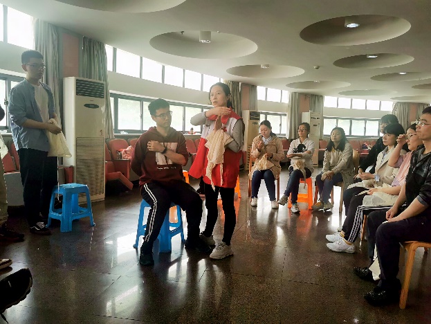 培训主要包括理论知识学习和实际操作培训,实际操作前,红十字会的老师为大家讲解相关急救理论知识,在同学们的积极配合下,老师将理论与身边的鲜活事例相结合,向全体学员讲述采取正确的急救措施的重要性,并通过PPT和视频的方式强调了应急救护时把握“黄金四分钟”是应急救护的关键。随后他逐一讲解了胸外按压、人工呼吸、包扎等急救理论与施救技巧。课堂上,同学们积极参与、踊跃发言、提出疑问,并在课后完成了理论知识测试。