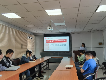 之后,党支部的同志们开展了“一党员、一党课”读书分享活动,吴丹同学以“为何毛泽东在1920年就已经入党了呢?”这一问题为线索带领大家回顾了中国共产党成立初期的历史,同时提出作为青年党员应不忘初心,牢记使命。青年党员在学习与工作中应了解自身实际情况,明晰自己的目标与规划,并应为实现自身理想而不懈奋斗。