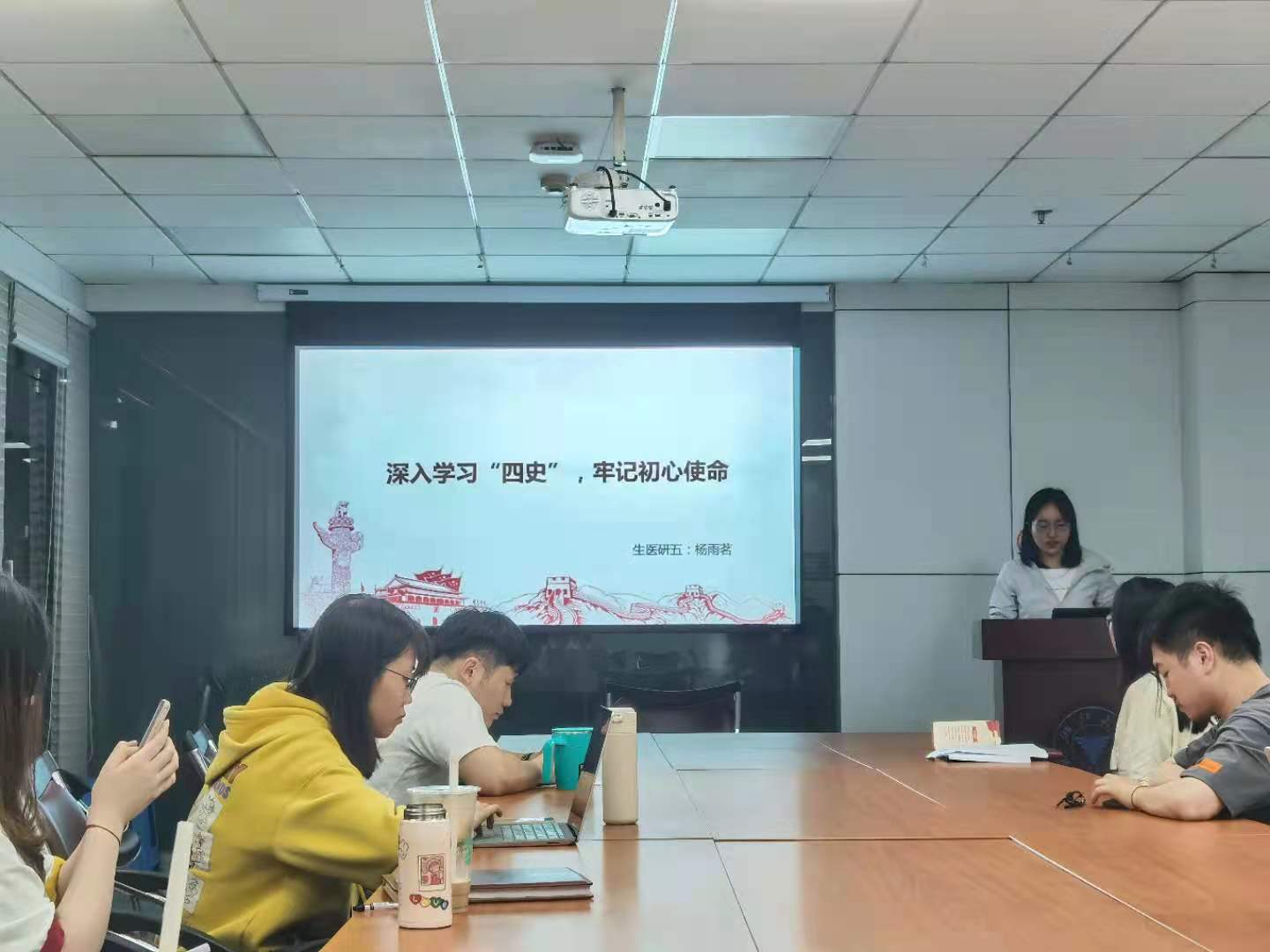 2021年5月26日下午,生医研五党支部在生仪学院五楼会议室召开了本月支部党员大会。党委委员刘清君老师参加了本次会议。本次会议包括党委委员讲党课、支部委员讲党课、“两优一先”评议等环节,在支部书记吴丹的主持下召开。