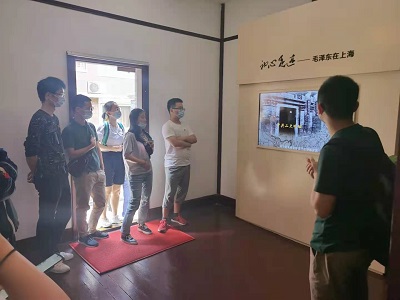 上午的行程是参观毛泽东旧居。毛泽东旧居是1924年6月至12月,毛泽东同夫人杨开慧在上海的寓居地,也是他在上海居住时间最长的一处。旧居内介绍了1924年2月至年底毛泽东在上海期间的工作、生活情况。通过参观旧居内的介绍,陈设以及各种书信文稿等,同学们也深刻地体会到了毛泽东坚定成为马克思主义者的这份初心,以及主席一家人舍家为国的牺牲奉献与革命情怀。