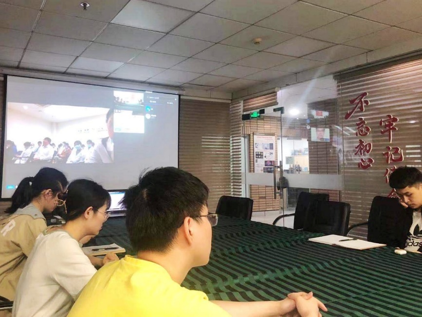 2021年5月13日晚6:00,生医研二党支部与浙四研二党支部分别在周楼三楼会议室和浙四医院会议室,通过钉钉平台连线的方式,进行了联合党日活动。