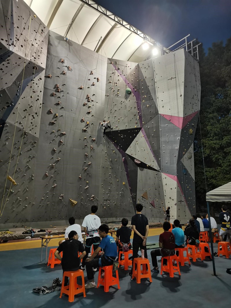 2021年6月23日晚“三好杯”户外攀岩高水平组比赛在紫金港攀岩基地举行。本次比赛运动员主体为校攀岩队成员,其中朱敏同学代表生仪学院参加男子难度攀岩的比赛。随着大灯亮起、比赛开始,场地气氛逐渐热烈。