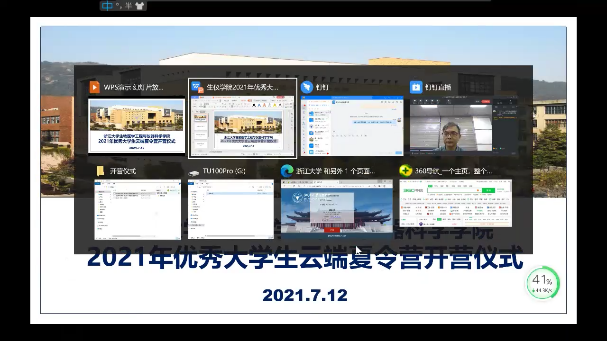 7月12日上午9:00,本期云端夏令营开营仪式在周亦卿科技大楼二楼会议室庄重举行,学院领导、各研究所代表、教师代表、全体营员及旁听人员如约相聚云端。