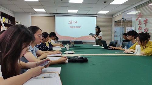 会议第四项议程,由各位党员同志一次开展批评与自我批评。全体党员在党支部带领下围绕中国共产党成立100周年讲话和习近平新时代中国特色社会主义谈了自己的心得,并对照党史学习教育目标要求和党员先锋模范作用等方面总结了自己的不足,并联系思想和工作实际对自己提出了更加严格的要求。党员教师陈杭老师指出,同学们在时间管理和人际交往方面存在共同的问题,党员同志需要提升自己的站位,以高标准自我要求,并对自己的问题切实的去行动改善。