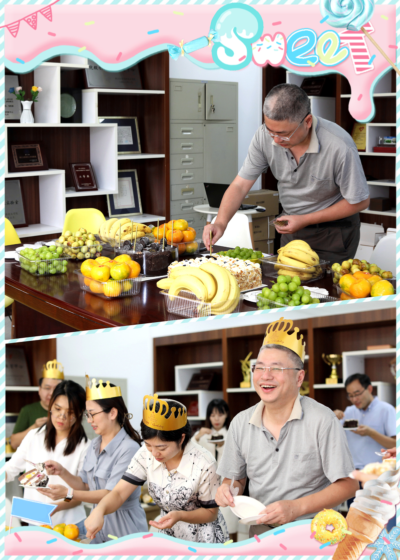 开学伊始,中秋刚过,在这硕果累累的季节,生仪学院二楼教工之家一片欢声笑语。为了表达对教职工辛勤工作的肯定和感谢,体现学院的关怀与温暖,增进教师间的沟通与交流,在开学的第一个月,9月28日中午,生仪学院工会精心策划了一场别开生面的教师集体生日庆祝活动。