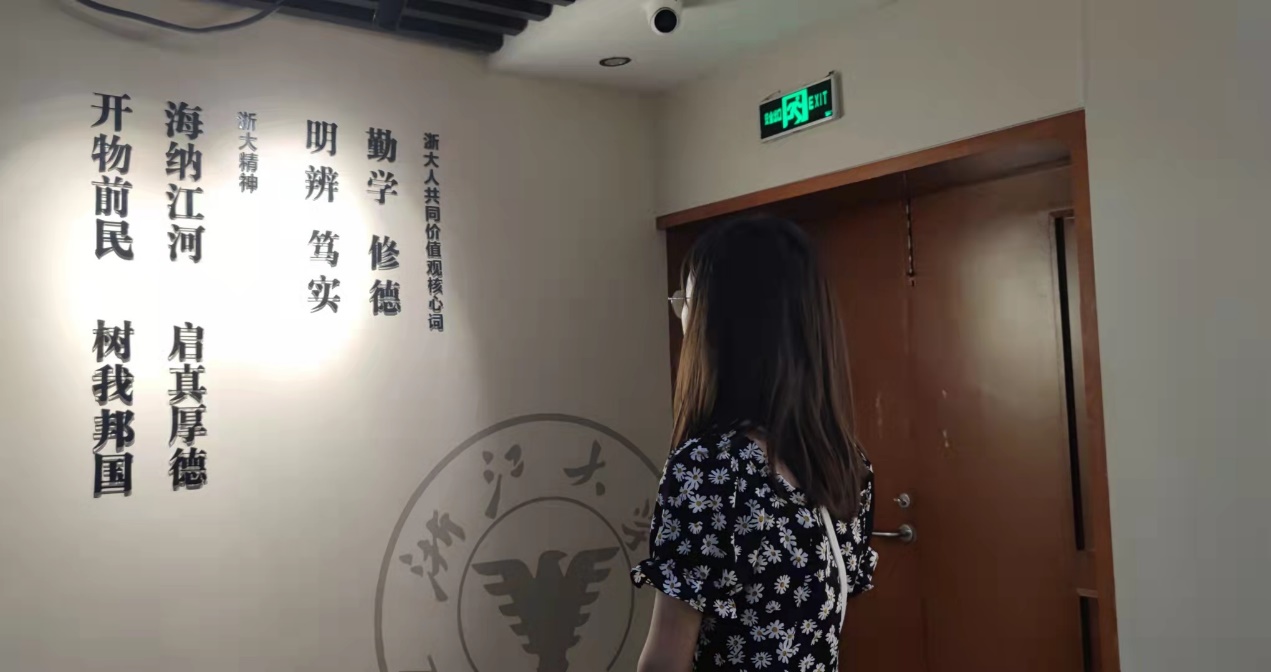 在参观的尾声,党支部及团支部成员分享了自身对于本次参观的感想。博士研究生孙昊同学说:“‘国有成均,在浙之滨’,浙大学风笃实,人才辈出。校史馆内一幅幅照片串联起来,构成了浙大百余年的峥嵘史,每一段都值得品读。由马一浮先生作词的校歌意味深长,其中的‘无曰已是,无曰遂真’,再读又有新感悟。这不仅告诫我们要不断探求真理,还提醒我们要谦虚。我辈当以史为鉴,继承求是创新的精神,奋力点亮一方星空。”今年刚入学的曹雨婷同学说:“一进展馆我就被大型的展板深深吸引住了。校史馆里,一页页的文字,一幅幅的图片,述说了浙大的历史,也书写了今天浙大的辉煌!我们作为新一代浙大人,要秉承“求是创新”的校训,以务实严谨的治学态度,为把浙大建设成为世界顶尖研究型大学而奋斗!”。