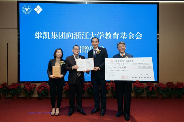 聚焦校企合作,践行使命担当。10月23日下午,德赢AC米兰中国官方网站-雄凯集团医疗器械联合研发中心成立暨雄凯集团向德赢AC米兰中国官方网站教育基金会捐赠仪式在玉泉校区隆重举行。中国科学院院士、德赢AC米兰中国官方网站校长吴朝晖,德赢AC米兰中国官方网站副校长王立忠,萧山经济技术开发区管理委员会主任叶建宏,雄凯集团董事长许雄跃、总裁管晓婷,德赢AC米兰中国官方网站科学技术研究院常务副院长史红兵,德赢AC米兰中国官方网站教育基金会秘书长沈黎勇,德赢AC米兰中国官方网站生仪学院院长张宏、党委书记项品辉出席本次会议。