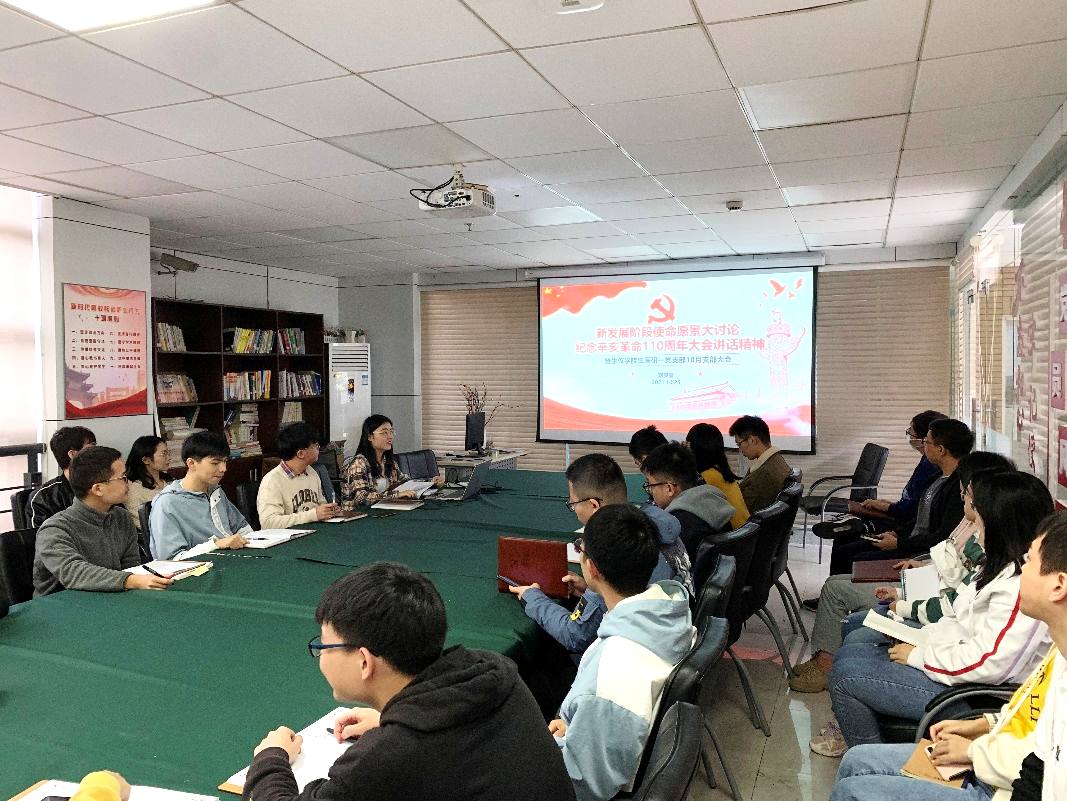 2021年10月25日上午,生仪学院生医所研究生第一党支部在周亦卿大楼三楼会议室召开了10月份支部大会,会议由支部书记刘梦雪同志主持。本次大会的主要内容是学习贯彻习近平总书记在纪念辛亥革命110周年大会上的重要讲话精神以及马克思主义异化劳动理论的党课学习。
