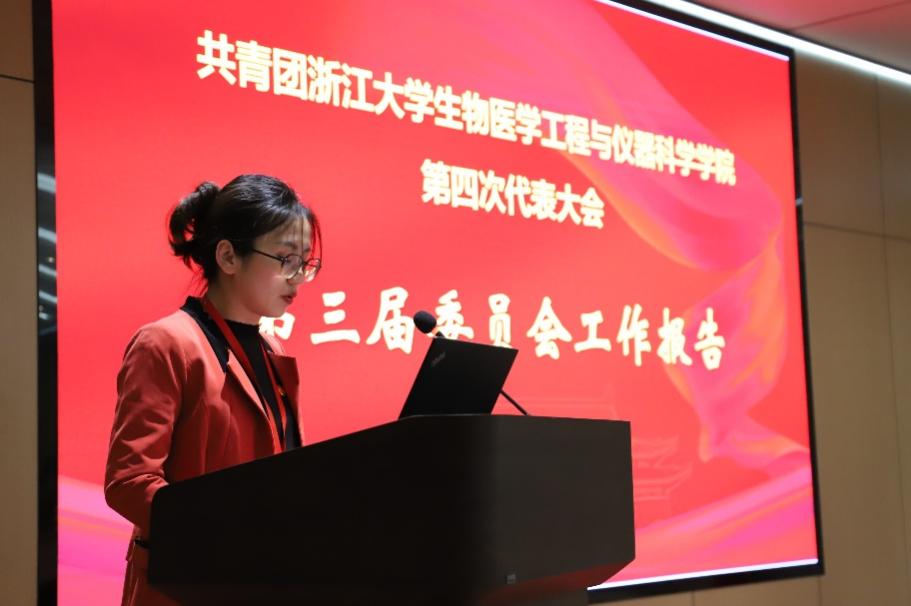 学院团委书记孙幼波代表本届团委委员向全体参会代表作题为《高举团旗跟党走,砥砺奋进新征程,团结带领全院团员青年谱写无愧于新时代的青春篇章》大会报告。报告总结回顾了学院团委过去五年在思想引领、青年发展和组织建设的各项工作,不断加强青年群体的向心力,增强青年队伍的凝聚力,提升青年组织的战斗力。