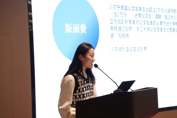 计划财务处崔晓彤针对财务报销注意事项,从基础报销规范、近期政策调整、常用信息查询等三个方面做了生动详实的分享。她提醒参会人员应自觉规范预约单的制作、签字、盖章等财务报销环节,并对差旅费、版面费、图书资料费和修缮工程等报销事务的政策调整内容做了说明。