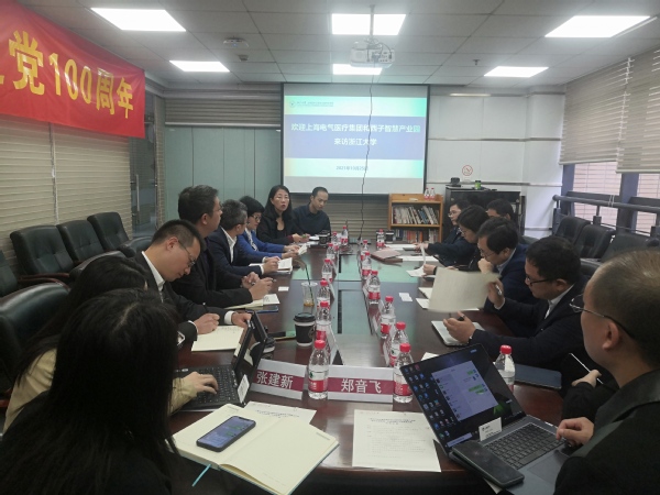 10月25日,上海电气医疗集团陈荣副总裁和西子智慧产业园赵方文总经理一行访问生仪学院,探讨推进校企合作交流。