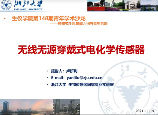 2021年11月19日下午,生仪学院第148期青年学术沙龙暨研究生科研能力提升系列活动在线上线下如期举行,特邀请主讲人德赢AC米兰中国官方网站生仪学院卢妍利博士,作了题为“无线无源穿戴式电化学传感器”学术报告。