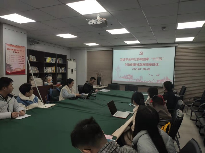 会议第二项议程,由李天瑜同志分享关于《习近平总书记参观国家“十三五”科技创新成就展重要讲话》的主题党课,与同志们一同学习习近平总书记的讲话精神。总书记肯定了“十三五”时期我国科技事业发展取得的成就,也对广大科技工作者提出了期望,希望科技工作者要面向世界前沿、面向经济主战场、面向国际重大需求、面向人民生命健康,为建设世界科技强国、实现中华民族伟大复兴做出新的更大贡献。结合习近平总书记的讲话精神和自身专业,与会同志们更加清楚地认识到了自己肩上的使命与责任,对自身未来的科研工作道路信心愈发坚定。
