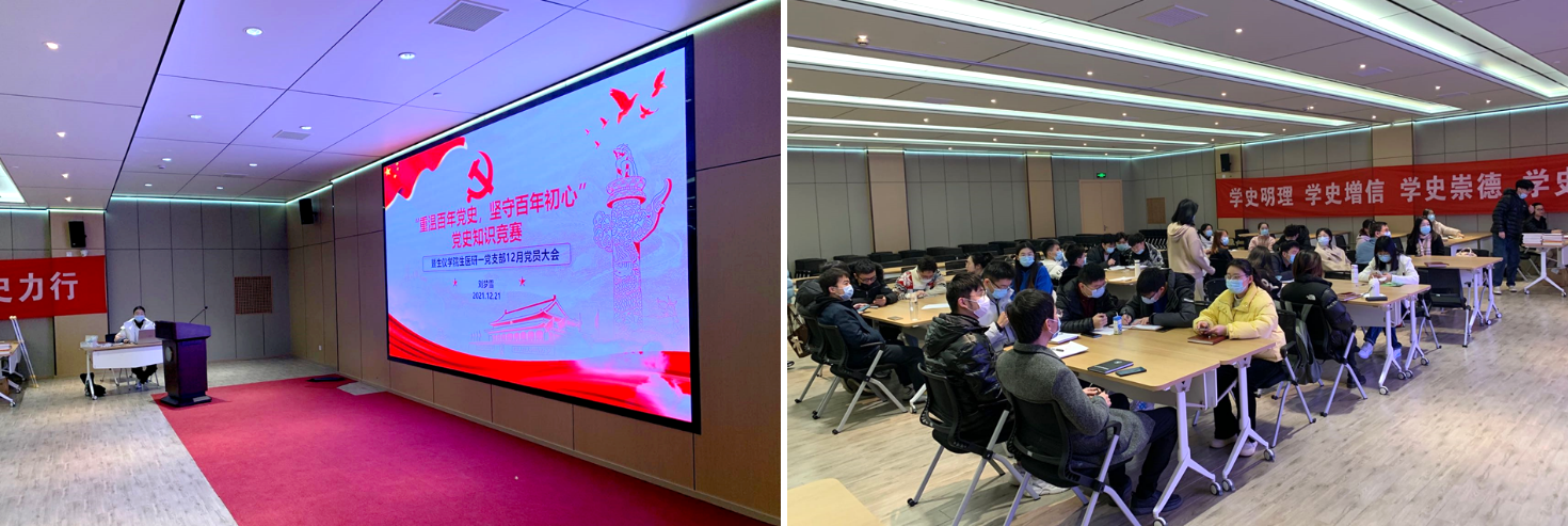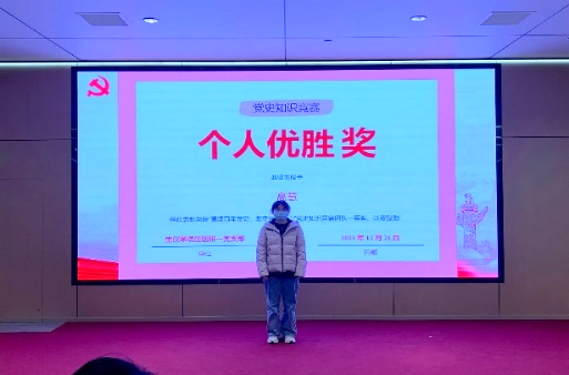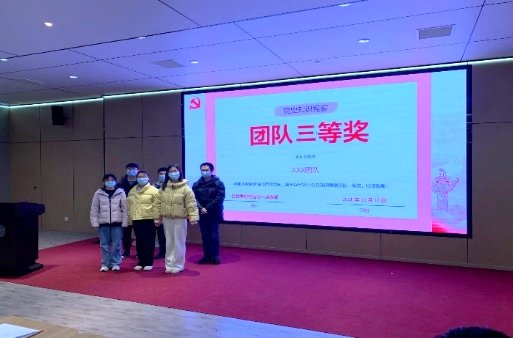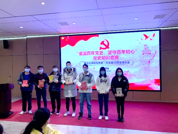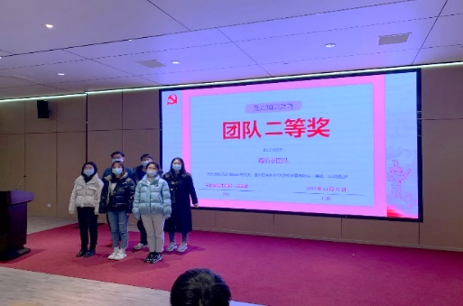 支部所有党员和积极分子共分为六组,各小组成员间团结合作,竞赛积分你追我赶,不甘落后。经过团队必答题、团队抢答题和单人争霸赛三个环节,最终角逐出了前三名的队伍,高慧同志也凭借精彩表现获得了个人赛优胜奖,各位积极参与的党员同志也获得了党史学习书籍作为激励。本次知识竞赛活动不仅考察了支部同志们党史学习的成果,更是以寓教于赛,寓教于乐,以赛促学的方式推动了党史学习教育走深走实。在建党一百周年的最后一次支部大会中,通过知识竞赛号召各位同志将党史学习继续贯彻到底,坚持不断通过理论知识学习来充实自己,坚守百年初心,做有理想、有本领、有担当的时代新人。