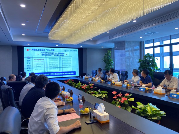 张宏院长一行与卫宁健康科技集团总裁王涛、副总裁兼CTO赵大平、副总裁孙嘉明等进行了座谈交流。王涛总裁和张宏院长首先对双方的发展概况做了简要介绍,生仪学院医工所所长吕旭东教授介绍研究所工作基础及合作建议,双方进行了气氛热烈的互动交流,达成了较好的合作意见和建议。