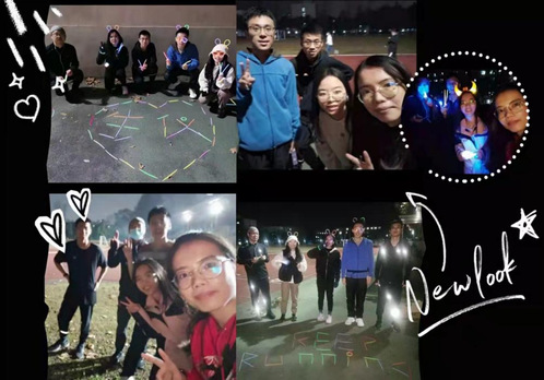 --“一群人相约一块夜跑,增添了不少夜跑动力。回想起来,虽然大部分时候还是独自绕操场跑步打卡,但也有不少难忘的回忆,比如跑步结束后和队友一起拍黑照。”