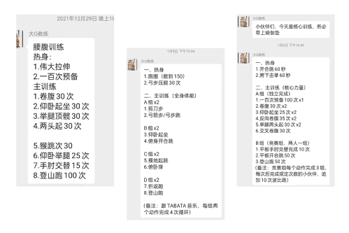 第一次健身课前,大家都在激烈的讨论着今天有什么训练内容,还有同学在开始前就已经放出狠话,每次都要坚持来,自己还要偷偷加练,参加完这次健身计划要暴瘦十斤,还有同学报名了两个活动说每次七点健完身要无缝衔接直接去跑步……