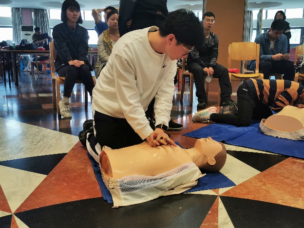 培训主要包括理论知识学习和实际操作培训,实际操作前,红十字会的老师为大家讲解相关急救理论知识,在同学们的积极配合下,老师将理论与身边的鲜活事例相结合,向全体学员讲述采取正确的急救措施的重要性,并通过PPT和视频的方式强调了应急救护时把握“黄金四分钟”是应急救护的关键。随后他逐一讲解了胸外按压、人工呼吸、包扎等急救理论与施救技巧。课堂上,同学们积极参与、踊跃发言、提出疑问,并在课后完成了理论知识测试。
