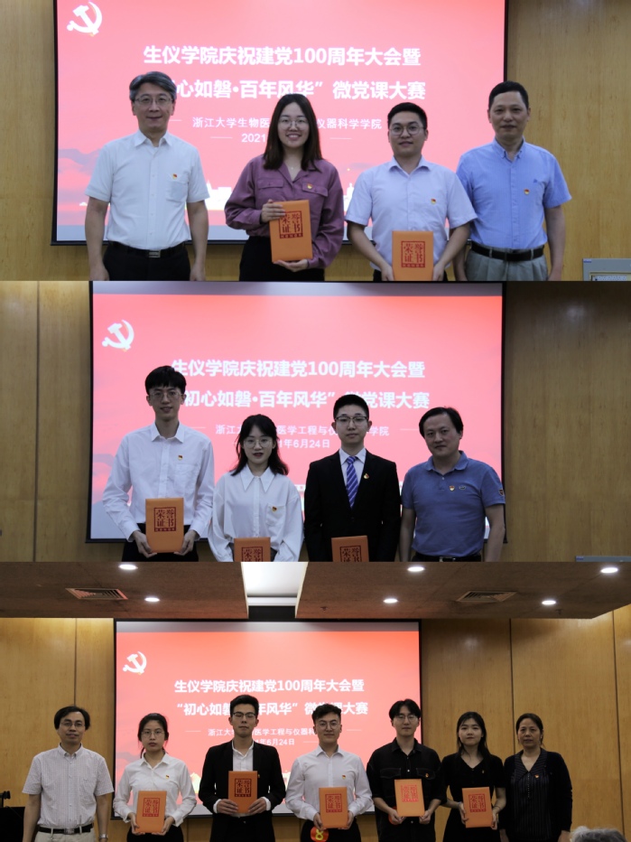 “七一”表彰环节,学院领导为老党员颁发了“光荣在党50年”纪念章,当前学院取得的各项显著成绩和育人成效,离不开一代代生仪人攻坚克难、自立自强的传承与拼搏,要向前辈学习、向老党员看齐,继承爱国奉献的优良传统,把服务国家作为最高追求,心怀“国之大者”,让红色基因代代相传。同时,还向2021年度生仪学院先进基层党支部、优秀共产党员、优秀党务工作者分别颁发了荣誉证书,向曾经辛勤服务在基层一线的离任党支部书记颁发纪念铭牌。