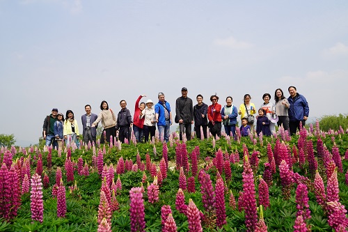 首先到达的是径山花海。径山花海坐落于美丽的大径山乡村国家公园内,占地近1000亩,花海错落有致,依山傍水,与周边自然美景融合成一体。在径山花海,老师们在花海参观各种花田,观赏各类鸟类,远眺青山滴翠、轻云出岫,近观鲜花艳绝、烟雨袅袅,聊一聊生活家常、拍一拍美景美照,还可以再农作物区体验作物耕种和小动物养殖,观察它们的生活习性。此中放松日常工作带来的压力,增加同事与家人之间的沟通。