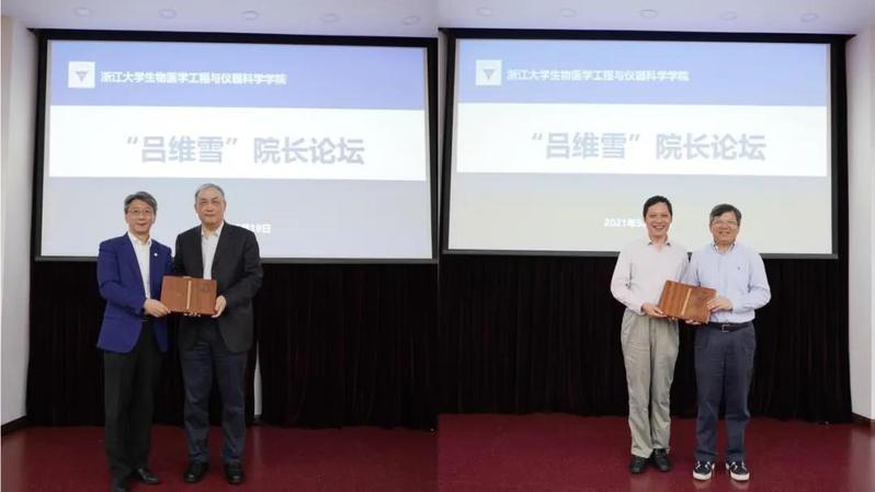 生仪学院张宏院长和项品辉书记分别为杨卫院士、陈纯院士赠送论坛纪念铭牌。